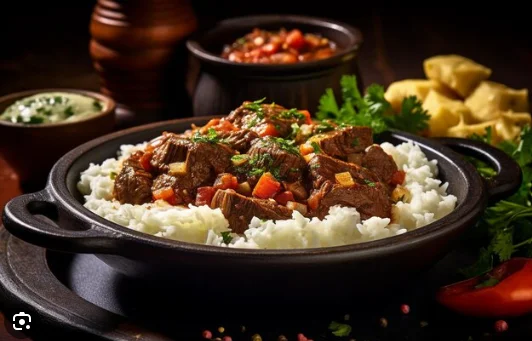 is a traditional Peruvian Christmas dish made with seared and roasted round of eye beef flavored in broth, red wine, caramelized onions, dried mushrooms, carrots, tomatoes, leek, cumin, turmeric, aji amarillo and aji panka. Served with steamed Peruvian white rice, quinoa, and/or Andean mashed potatoes.