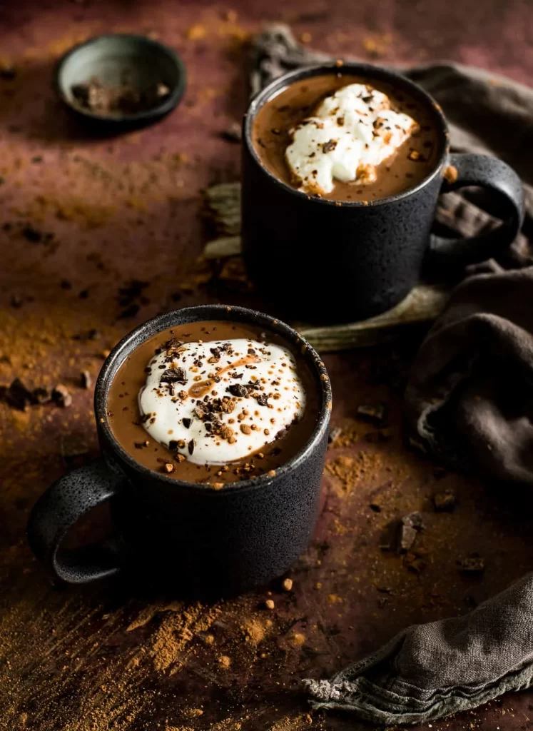 Prepared with condensed (or whole) milk, cinnamon, cloves, 100% pure Amazonian cacao, butter, vanilla powder, Peruvian spices, and whipped cream.