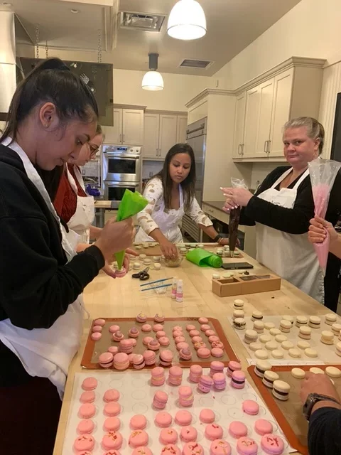Learn to make macarons using the Italian sugar syrup method. Pipe them out and make the fillings while they dry. Students will make enough to take a small box home to share.