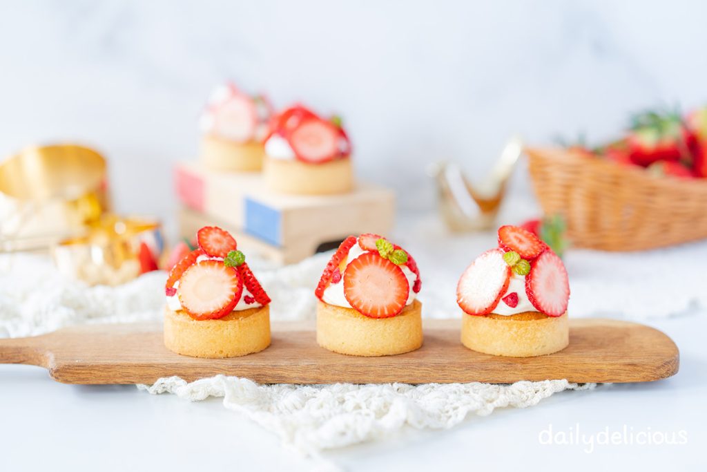 Buttery tart shells filled with silky vanilla pastry cream, topped with fresh, juicy strawberries for a naturally sweet finish.