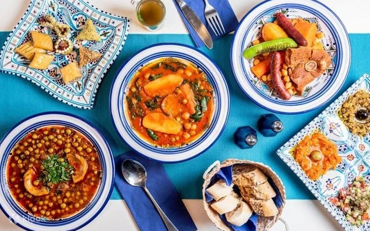 is a staple of Tunisian gastronomy. The nutty flavor and fluffy texture of the grain serves well as a base for stews and vegetables. Made from semolina wheat, the Berbers from Northwest Africa are credited with its invention in the 12th century.Cornes de Gazelle are crescent-shaped cookies filled with a sweet almond-orange blossom filling and topped with crushed pistachios. These sweets hail back to when Tunisia was a French colony